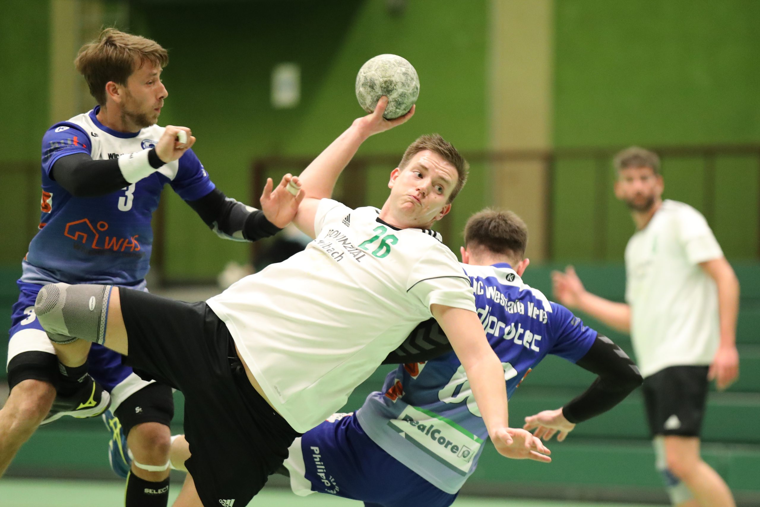 Von Beginn der zweiten Halbzeit an schien es so, als ob in der Kabine der SG Suderwich die richtigen Worte gefunden wurden. Die Mannschaft wirkte von Beginn an hellwach und machte den Anschein, dass die Fehler aus den ersten dreißig Minuten erkannt wurden und ein anderes Gesicht gezeigt werden sollte. Über fünf Tore am Stück stellte die Heimsieben den Spielstand auf 17:13. Herne wirkte in dieser Phase überfordert und konnte den Gastgebern, anders als in der ersten Halbzeit, nichts entgegensetzen. Tor um Tor baute die SG den Vorsprung aus und konnte sich dabei auch auf ihr Torhütergespann Maurits Müller und Jens Warmers verlassen, 23:15. Etwas chaotisch wurde es dann noch einmal gut zehn Minuten vor dem Ende. Nach diversen Zwei-Minuten-Strafen stand die Heimsieben zwischenzeitlich nur noch mit drei Feldspielern auf dem Feld. Doch auch hier behielt die Mannschaft einen kühlen Kopf und hielt die Gäste weiter auf Distanz. Den Schlusspunkt der Partie setzte Jan Anderle eine halbe Minute vor dem Abpfiff mit einem seiner zwölf Treffer zum 30:20 Endstand.