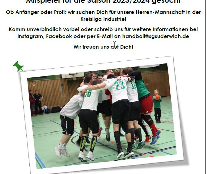 Du hast Bock auf Handball? Wir suchen für unsere Kreisliga-Herrenmannschaft für die Saison 2023/24 neue Mitspieler. Ob Neuling, Veteran, Profi, Wiedereinsteiger, … –…